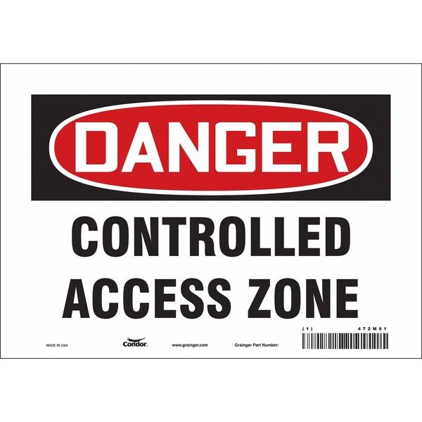 Safety Sign, Vertical Rectangle, Number of Printed Sides 1, English, Sign Format Traditional OSHA, Sign Legend Controlled Access Zone, Sign Legend Background Color White, Sign Legend Style Text