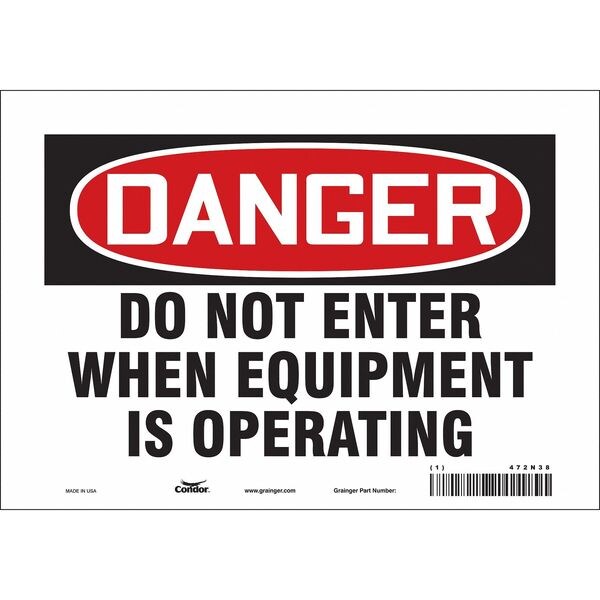 Safety Sign, Vertical Rectangle, Number of Printed Sides 1, English, Sign Format Traditional OSHA, Sign Legend Do Not Enter When Equipment Is Operating, Sign Legend Background Color White, Sign Legend Style Text