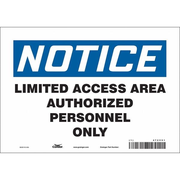 Safety Sign, Vertical Rectangle, Number of Printed Sides 1, English, Sign Format Traditional OSHA, Sign Legend Limited Access Area Authorized Personnel Only, Sign Legend Background Color White, Sign Legend Style Text