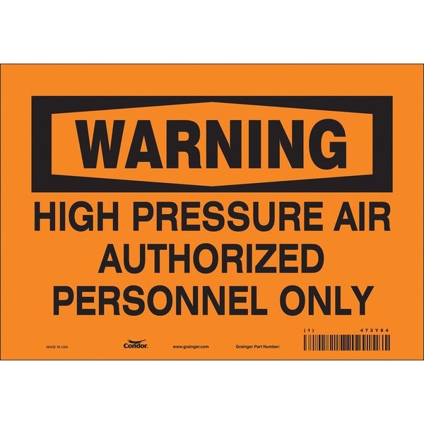 Safety Sign, Vertical Rectangle, Number of Printed Sides 1, English, Sign Format Traditional OSHA, Sign Legend High Pressure Air Authorized Personnel Only, Sign Legend Background Color Orange, Sign Legend Style Text