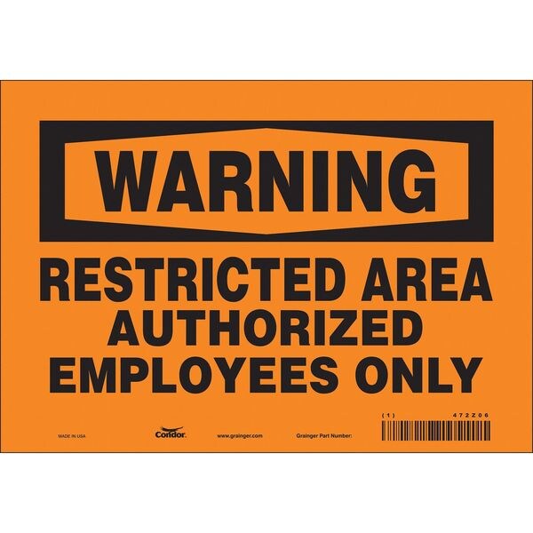 Safety Sign, Vertical Rectangle, Number of Printed Sides 1, English, Sign Format Traditional OSHA, Sign Legend Restricted Area Authorized Employees Only, Sign Legend Background Color Orange, Sign Legend Style Text