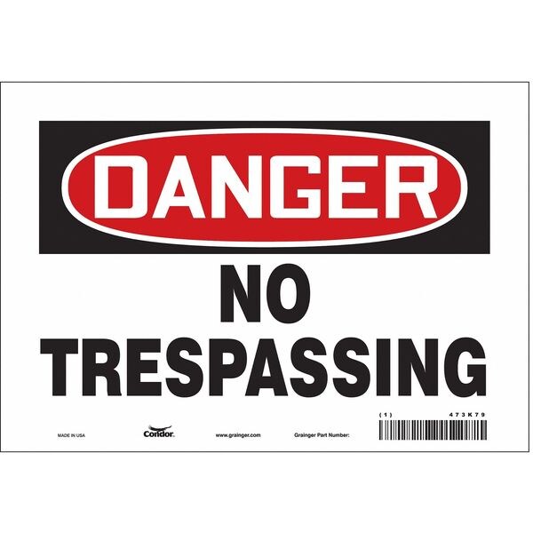 Safety Sign, Vertical Rectangle, Number of Printed Sides 1, English, Sign Format Traditional OSHA, Sign Legend No Trespassing, Sign Legend Background Color White, Sign Legend Style Text