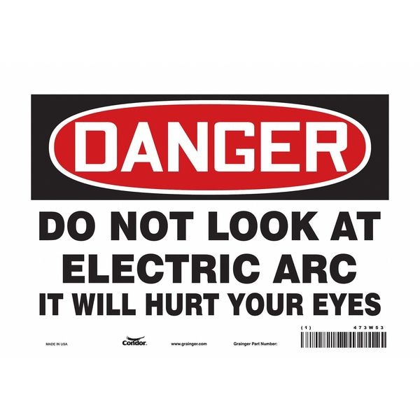 Safety Sign, Vertical Rectangle, Number of Printed Sides 1, English, Sign Format Traditional OSHA, Sign Legend Do Not Look At Electric Arc It Will Hurt Your Eyes, Sign Legend Background Color White, Sign Legend Style Text