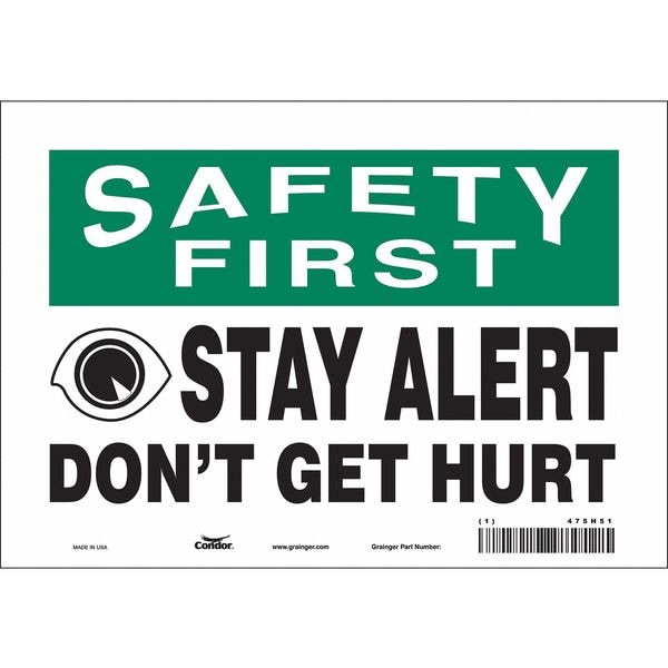 Safety Sign, Vertical Rectangle, Number of Printed Sides 1, English, Sign Format Traditional OSHA, Sign Legend Stay Alert Don'T Get Hurt, Sign Legend Background Color White, Sign Legend Style Symbol and Text