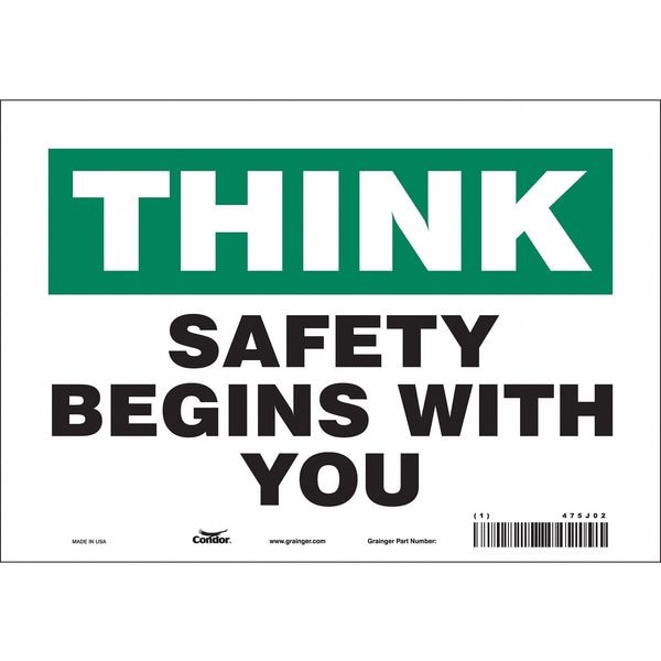 Safety Sign, 7 in Height, 10 in Width, Vinyl, Vertical Rectangle, English, 475J02