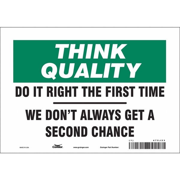 Safety Sign, Vertical Rectangle, Number of Printed Sides 1, English, Sign Format Other Format, Sign Legend Do It Right The First Time We Don't Always Get A Second Chance, Sign Legend Background Color Green, White, Sign Legend Style Text