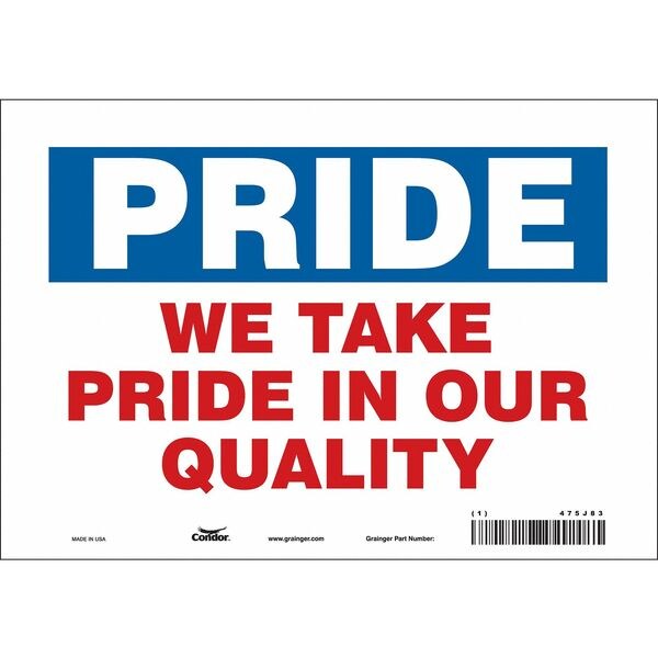 Safety Sign, Vertical Rectangle, Number of Printed Sides 1, English, Sign Format Other Format, Sign Legend We Take Pride In Our Quality, Sign Legend Background Color Blue, White, Sign Legend Style Text