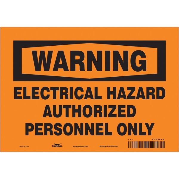 Safety Sign, Vertical Rectangle, Number of Printed Sides 1, English, Sign Format Traditional OSHA, Sign Legend Electrical Hazard Authorized Personnel Only, Sign Legend Background Color Orange, Sign Legend Style Text