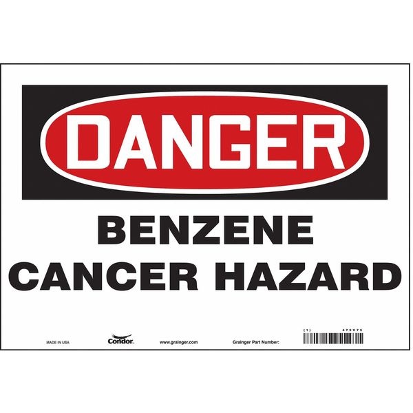 Safety Sign, Vertical Rectangle, Number of Printed Sides 1, English, Sign Format Traditional OSHA, Sign Legend Benzene Cancer Hazard, Sign Legend Background Color White, Sign Legend Style Text