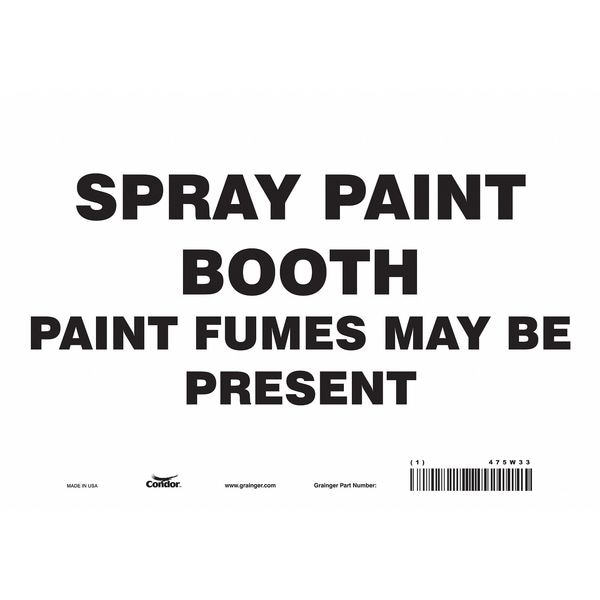 Safety Sign, Vertical Rectangle, Number of Printed Sides 1, English, Sign Format Other Format, Sign Legend Spray Paint Booth Paint Fumes May Be Present, Sign Legend Background Color White, Sign Legend Style Text