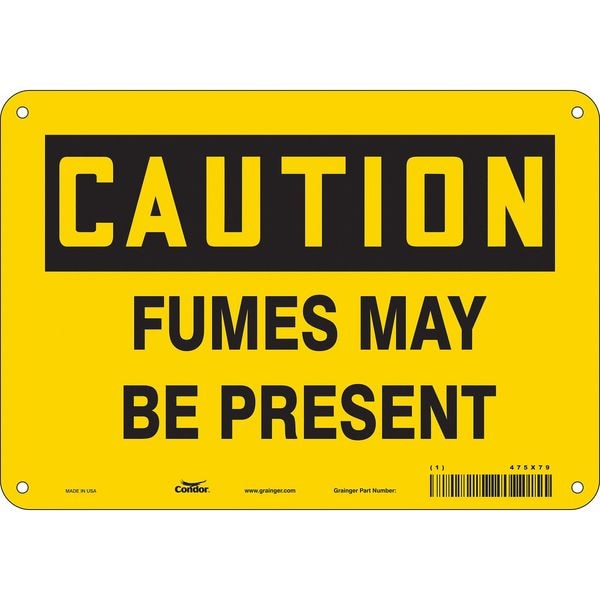 Safety Sign, Vertical Rectangle, Number of Printed Sides 1, English, Sign Format Traditional OSHA, Sign Legend Fumes May Be Present, Sign Legend Background Color Yellow, Sign Legend Style Text