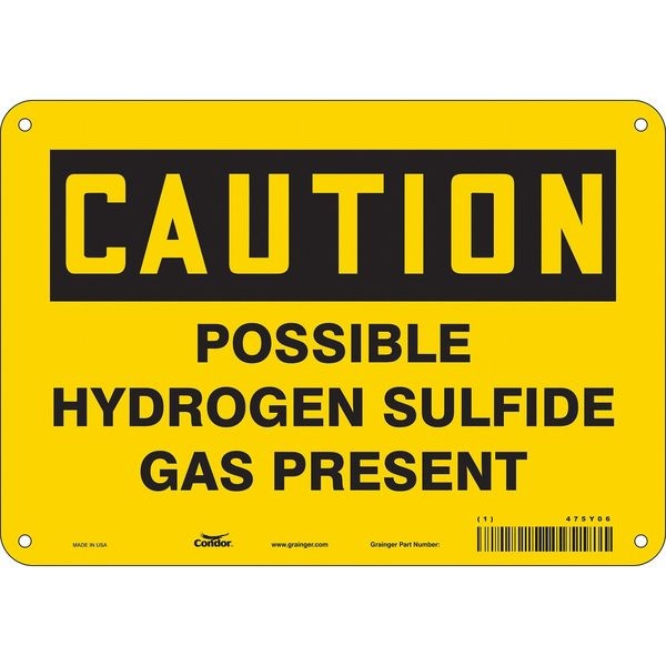 Safety Sign, Vertical Rectangle, Number of Printed Sides 1, English, Sign Format Traditional OSHA, Sign Legend Possible Hydrogen Sulfide Gas Present, Sign Legend Background Color Yellow, Sign Legend Style Text