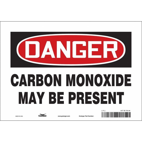 Safety Sign, Vertical Rectangle, Number of Printed Sides 1, English, Sign Format Traditional OSHA, Sign Legend Carbon Monoxide May Be Present, Sign Legend Background Color White, Sign Legend Style Text