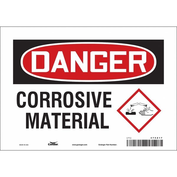 Safety Sign, Vertical Rectangle, Number of Printed Sides 1, English, Sign Format Traditional OSHA, Sign Legend Corrosive Materials, Sign Legend Background Color White, Sign Legend Style Symbol and Text