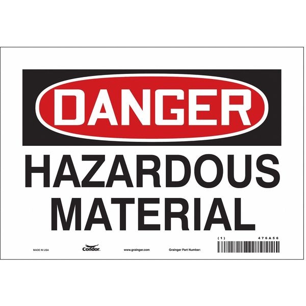 Safety Sign, Vertical Rectangle, Number of Printed Sides 1, English, Sign Format Traditional OSHA, Sign Legend Hazardous Material, Sign Legend Background Color White, Sign Legend Style Text