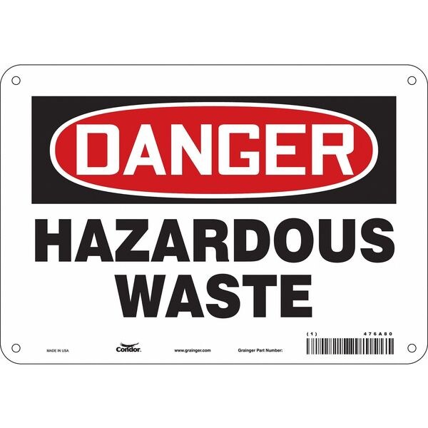 Safety Sign, Vertical Rectangle, Number of Printed Sides 1, English, Sign Format Traditional OSHA, Sign Legend Hazardous Waste, Sign Legend Background Color White, Sign Legend Style Text