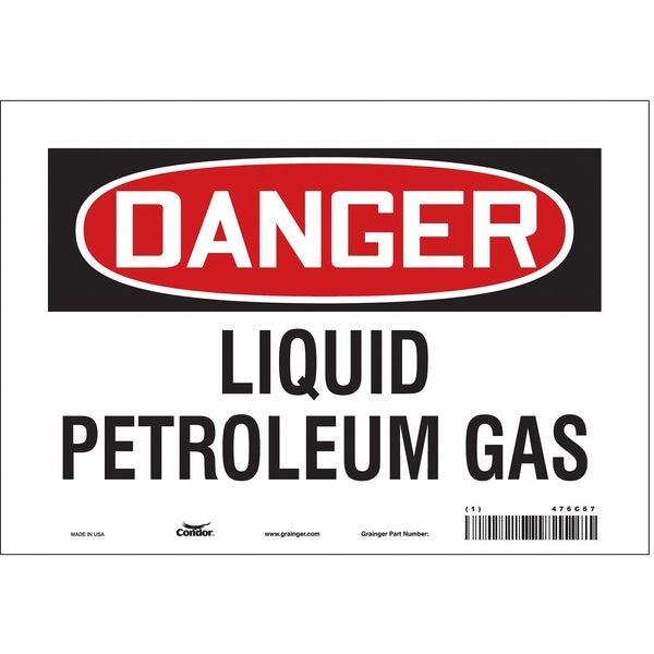 Safety Sign, Vertical Rectangle, Number of Printed Sides 1, English, Sign Format Traditional OSHA, Sign Legend Liquid Petroleum Gas, Sign Legend Background Color White, Sign Legend Style Text