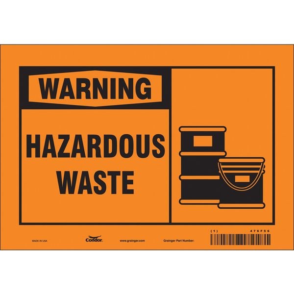 Safety Sign, Vertical Rectangle, Number of Printed Sides 1, English, Sign Format Traditional OSHA, Sign Legend Hazardous Waste, Sign Legend Background Color Orange, Sign Legend Style Symbol and Text