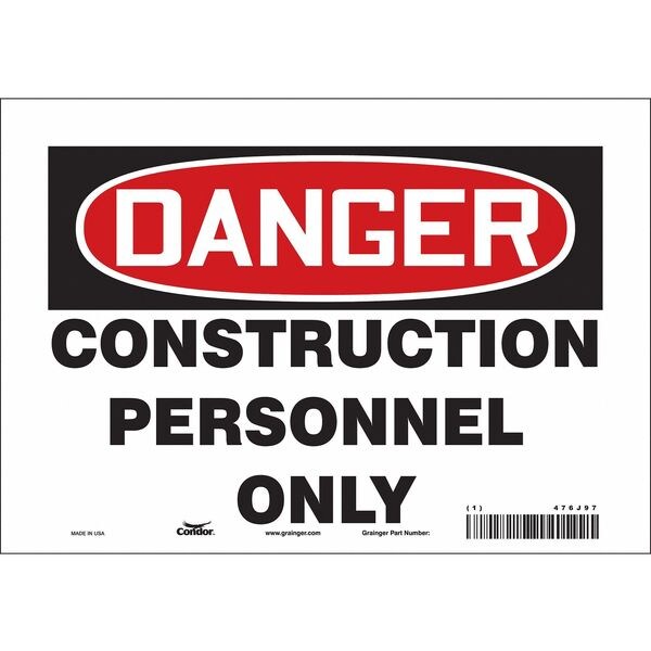 Safety Sign, Vertical Rectangle, Number of Printed Sides 1, English, Sign Format Traditional OSHA, Sign Legend Construction Personnel Only, Sign Legend Background Color White, Sign Legend Style Text