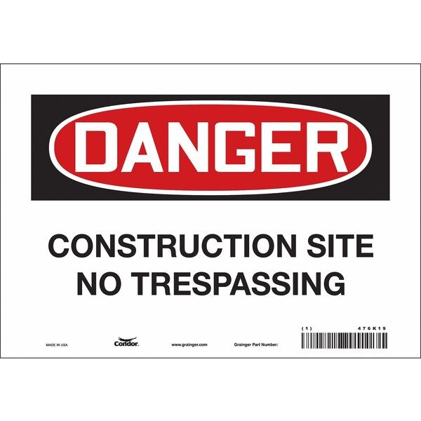 Safety Sign, Vertical Rectangle, Number of Printed Sides 1, English, Sign Format Traditional OSHA, Sign Legend Construction Site No Trespassing, Sign Legend Background Color White, Sign Legend Style Text