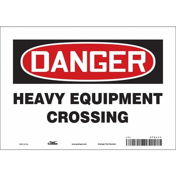 Safety Sign, Vertical Rectangle, Number of Printed Sides 1, English, Sign Format Traditional OSHA, Sign Legend Heavy Equipment Crossing, Sign Legend Background Color White, Sign Legend Style Text