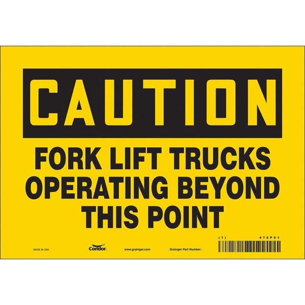 Safety Sign, Vertical Rectangle, Number of Printed Sides 1, English, Sign Format Traditional OSHA, Sign Legend Forklift Trucks Operating Beyond This Point, Sign Legend Background Color Yellow, Sign Legend Style Text
