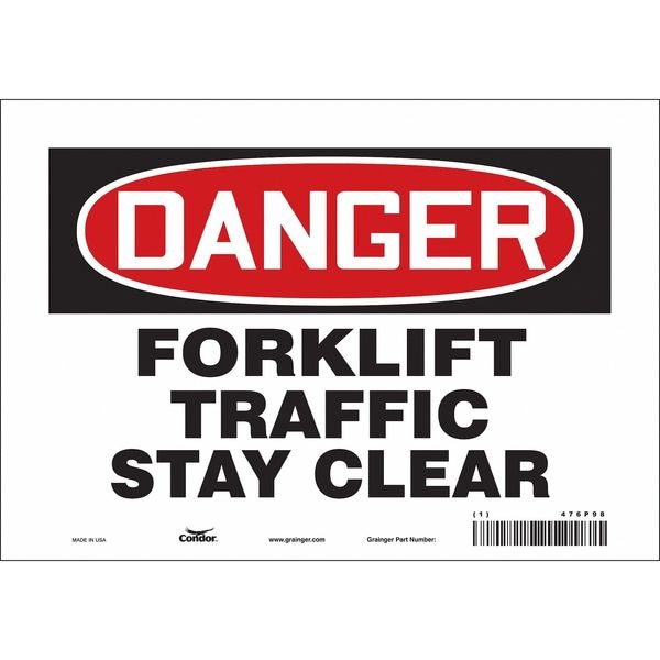 Safety Sign, Vertical Rectangle, Number of Printed Sides 1, English, Sign Format Traditional OSHA, Sign Legend Forklift Traffic Stay Clear, Sign Legend Background Color White, Sign Legend Style Text