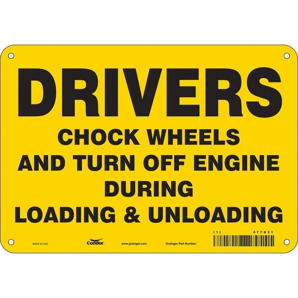 Safety Sign, Vertical Rectangle, Number of Printed Sides 1, English, Sign Format Other Format, Sign Legend Drivers Chock Wheels And Turn Off Engine During Loading & Unloading, Sign Legend Background Color Yellow, Sign Legend Style Text