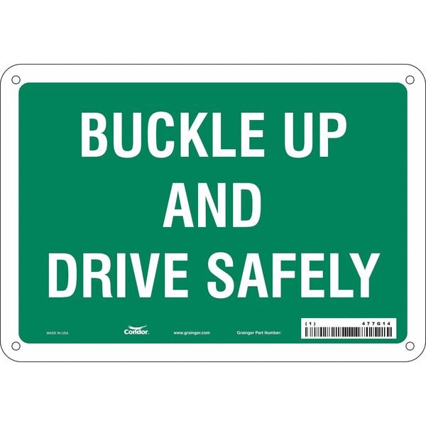 Safety Sign, Vertical Rectangle, Number of Printed Sides 1, English, Sign Format Other Format, Sign Legend Buckle Up And Drive Safely, Sign Legend Background Color Green, Sign Legend Style Text