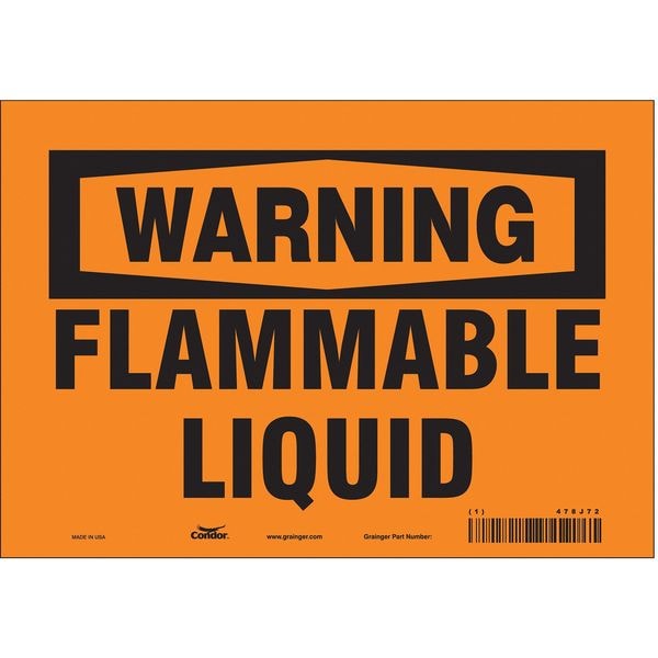 Safety Sign, Vertical Rectangle, Number of Printed Sides 1, English, Sign Format Traditional OSHA, Sign Legend Flammable Liquid, Sign Legend Background Color Orange, Sign Legend Style Text