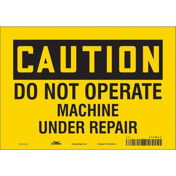 Safety Sign, Vertical Rectangle, Number of Printed Sides 1, English, Sign Format Traditional OSHA, Sign Legend Do Not Operate Machine Under Repair, Sign Legend Background Color Yellow, Sign Legend Style Text