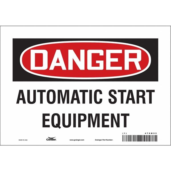 Safety Sign, Vertical Rectangle, Number of Printed Sides 1, English, Sign Format Traditional OSHA, Sign Legend Automatic Start Equipment, Sign Legend Background Color White, Sign Legend Style Text