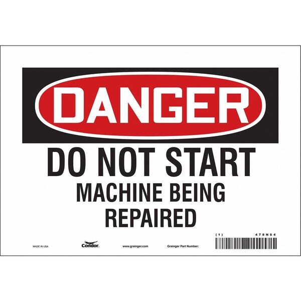 Safety Sign, Vertical Rectangle, Number of Printed Sides 1, English, Sign Format Traditional OSHA, Sign Legend Do Not Start Machine Being Repaired, Sign Legend Background Color White, Sign Legend Style Text