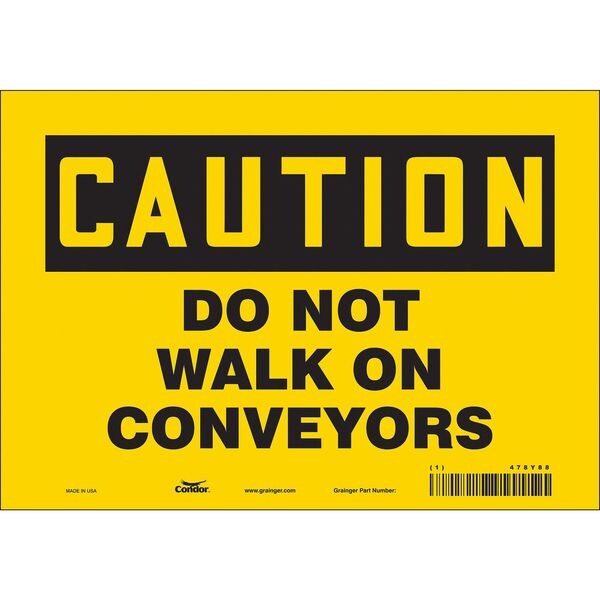 Safety Sign, Vertical Rectangle, Number of Printed Sides 1, English, Sign Format Traditional OSHA, Sign Legend Do Not Walk On Conveyors, Sign Legend Background Color Yellow, Sign Legend Style Text