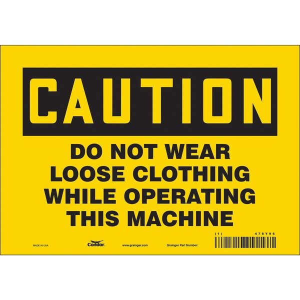 Safety Sign, Vertical Rectangle, Number of Printed Sides 1, English, Sign Format Traditional OSHA, Sign Legend Do Not Wear Loose Clothing While Operating This Machine, Sign Legend Background Color Yellow, Sign Legend Style Text