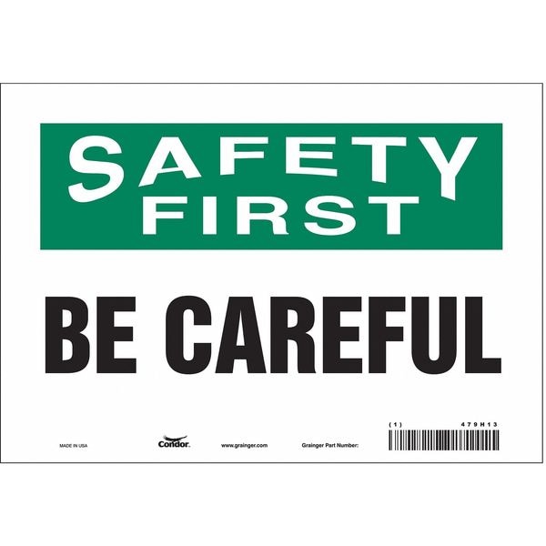 Safety Sign, Vertical Rectangle, Number of Printed Sides 1, English, Sign Format Traditional OSHA, Sign Legend Be Careful, Sign Legend Background Color White, Sign Legend Style Text