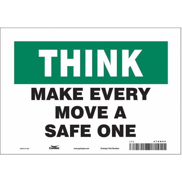 Safety Sign, Vertical Rectangle, Number of Printed Sides 1, English, Sign Format Other Format, Sign Legend Make Every Move A Safe One, Sign Legend Background Color Green, White, Sign Legend Style Text