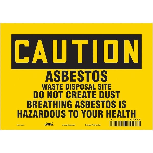 Safety Sign, Vertical Rectangle, Number of Printed Sides 1, English, Sign Format Traditional OSHA, Sign Legend Asbestos Waste Disposal Site Do Not Create Dust Breathing Asbestos Is Hazardous To Your Health, Sign Legend Background Color Yellow, Sign Legend Style Text