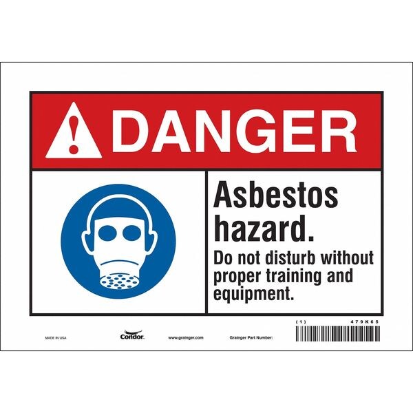 Safety Sign, Vertical Rectangle, Number of Printed Sides 1, English, Sign Format ANSI/OSHA Format, Sign Legend Asbestos. Hazardous. Do Not Disturb Without Proper Training And Equipment., Sign Legend Background Color White, Sign Legend Style Symbol and Text