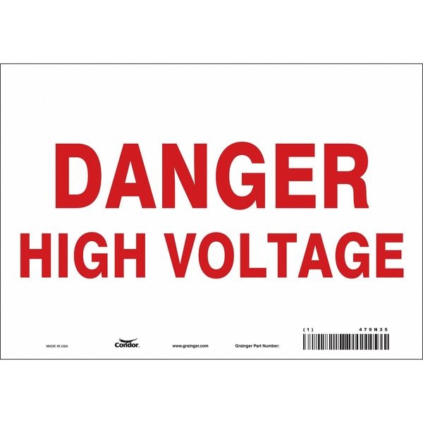 Safety Sign, Vertical Rectangle, Number of Printed Sides 1, English, Sign Format Other Format, Sign Legend Danger High Voltage, Sign Legend Background Color White, Sign Legend Style Text