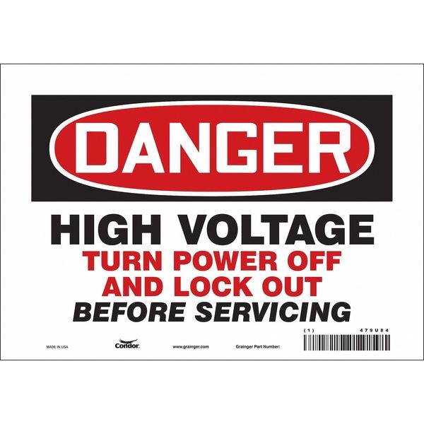 Safety Sign, Vertical Rectangle, Number of Printed Sides 1, English, Sign Format Traditional OSHA, Sign Legend High Voltage Turn Power Off And Lock Out Before Servicing, Sign Legend Background Color White, Sign Legend Style Text