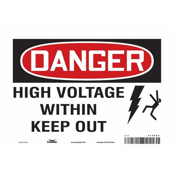 Safety Sign, Vertical Rectangle, Number of Printed Sides 1, English, Sign Format Traditional OSHA, Sign Legend High Voltage Within Keep Out, Sign Legend Background Color White, Sign Legend Style Symbol and Text