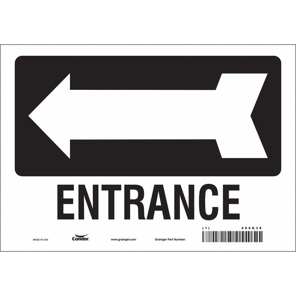 Safety Sign, Vertical Rectangle, Number of Printed Sides 1, English, Sign Legend Entrance (Arrow), Sign Legend Background Color Black, White, Sign Legend Style Symbol and Text