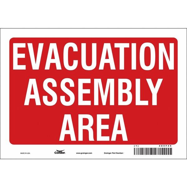 Safety Sign, Vertical Rectangle, Number of Printed Sides 1, English, Sign Legend Evacuation Assembly Area, Sign Legend Background Color Red, Sign Legend Style Text