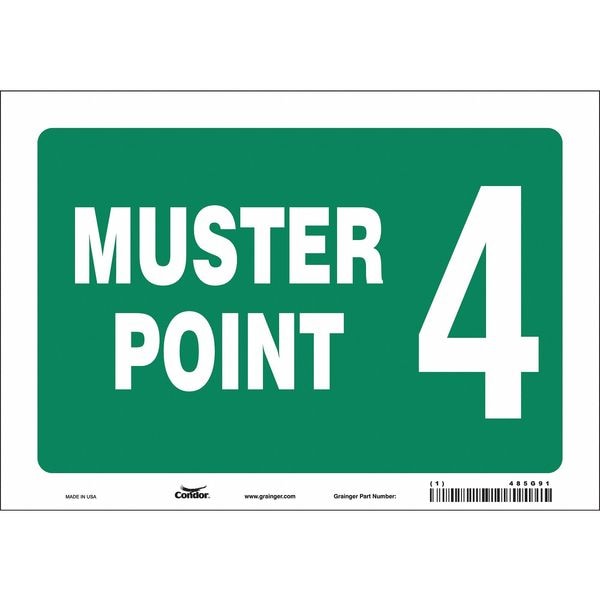 Safety Sign, Vertical Rectangle, Number of Printed Sides 1, English, Sign Format Other Format, Sign Legend Muster Point 4, Sign Legend Background Color Green, Sign Legend Style Text