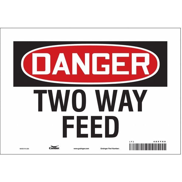 Safety Sign, Vertical Rectangle, Number of Printed Sides 1, English, Sign Format Traditional OSHA, Sign Legend Two Way Feed, Sign Legend Background Color White, Sign Legend Style Text