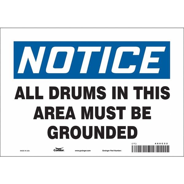 Safety Sign, Vertical Rectangle, Number of Printed Sides 1, English, Sign Format Traditional OSHA, Sign Legend All Drums In This Area Must Be Grounded, Sign Legend Background Color White, Sign Legend Style Text