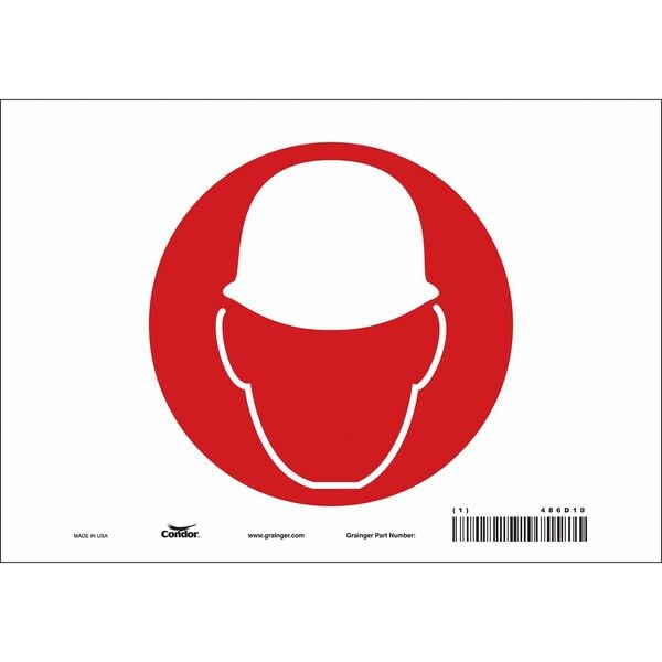 Safety Sign, Vertical Rectangle, Number of Printed Sides 1, English, Sign Format Other Format, Sign Legend Hard Hat, Sign Legend Background Color White, Sign Legend Style Symbol