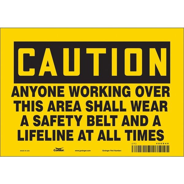 Safety Sign, Vertical Rectangle, Number of Printed Sides 1, English, Sign Format Traditional OSHA, Sign Legend Anyone Working Over This Area Shall Wear A Safety Belt And A Lifeline At All Times, Sign Legend Background Color Yellow, Sign Legend Style Text
