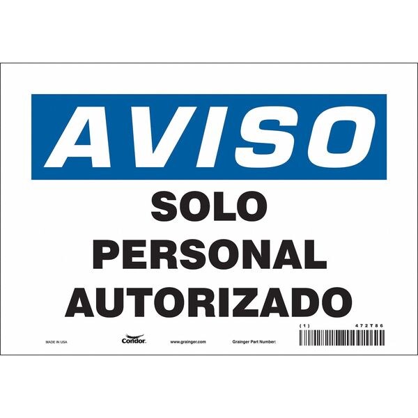 Safety Sign, Vertical Rectangle, Number of Printed Sides 1, Spanish, Sign Format Traditional OSHA, Sign Legend Solo Personal Autorizado, Sign Legend Background Color White, Sign Legend Style Text